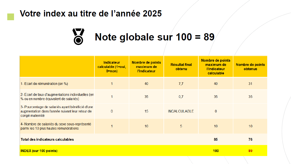 Le maximum de point est accordé si l’entreprise a augmenté autant d’hommes que de femmes, à 2% près ou à 2 personnes près.
